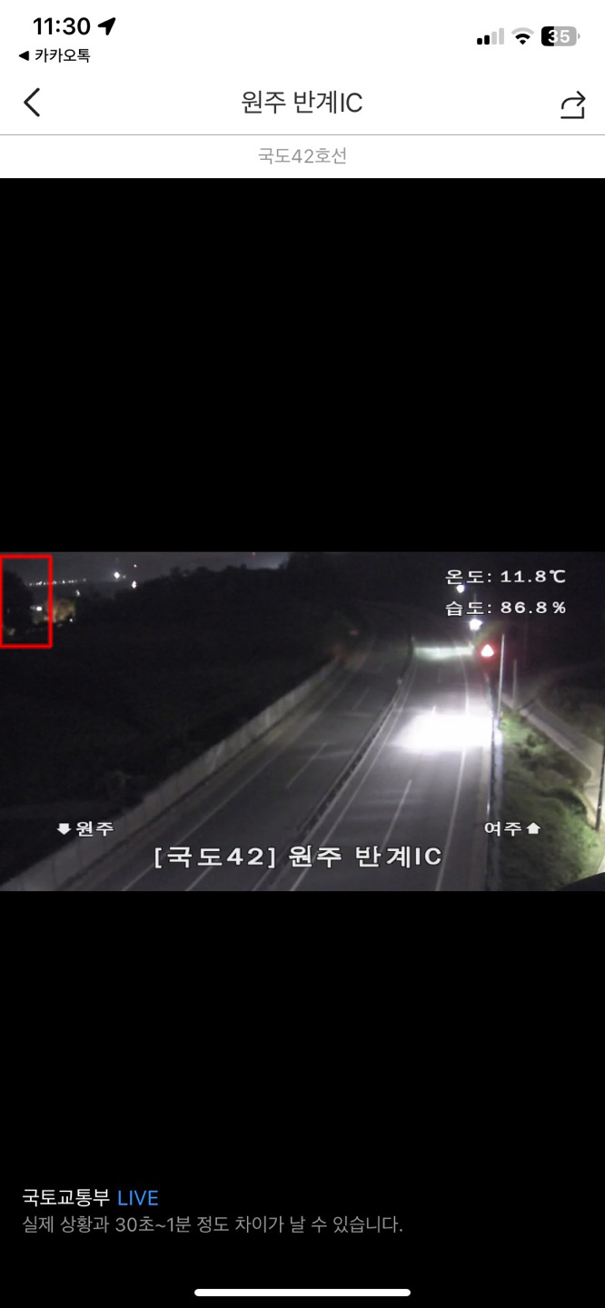 4. 아래 화면처럼 실시간 CCTV를 보실 수 있습니다. 밤에는 어두워서 잘 안 보이는데, 왼쪽 상단의 부분이 바로 반계리 은행나무 입니다.