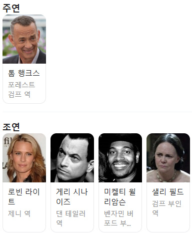 위의 버튼을 누르시면 포레스트 검프 출연진의 상세 정보를 보실 수 있습니다.