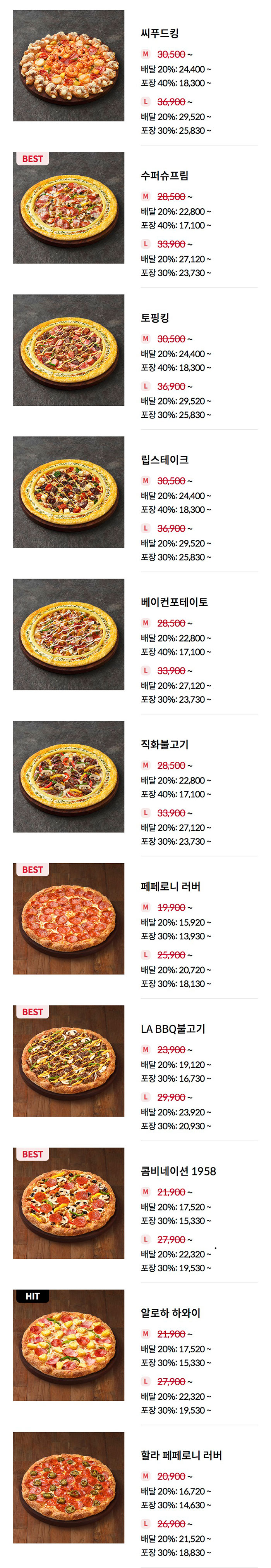 1. 피자헛 인기메뉴 가격